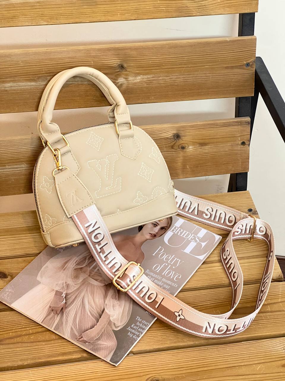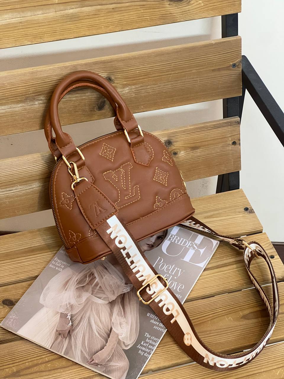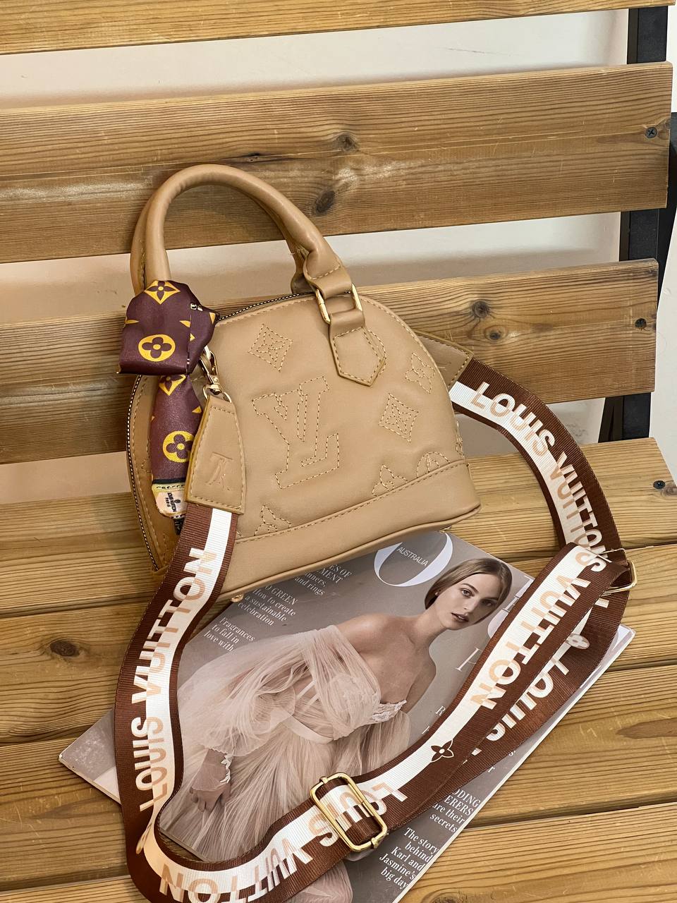 ابعاد:۱۹/۱۳ حک برند دارد اسکارف دارد بگ پارچه ای برند دارد